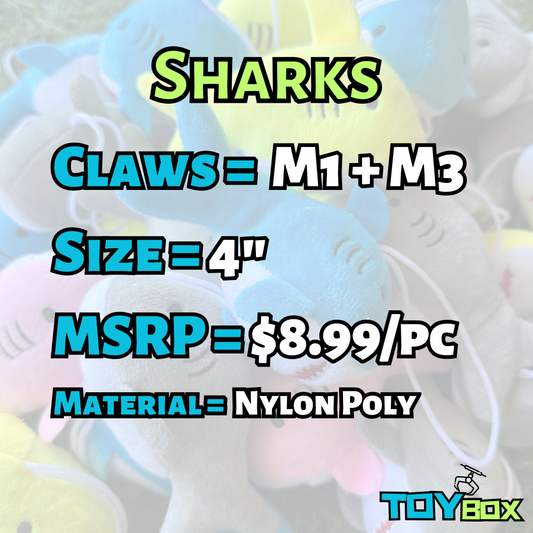 ($.75) 100pc 4.5" Sharks for Mini Claw Machines