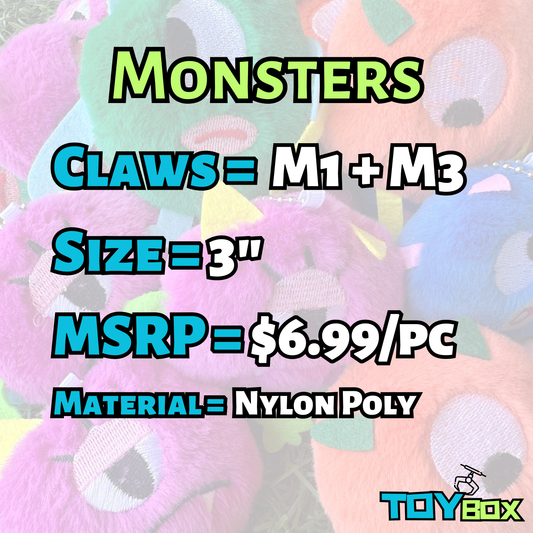 ($.72) 100pc 3" Cute Monsters in 4 colors